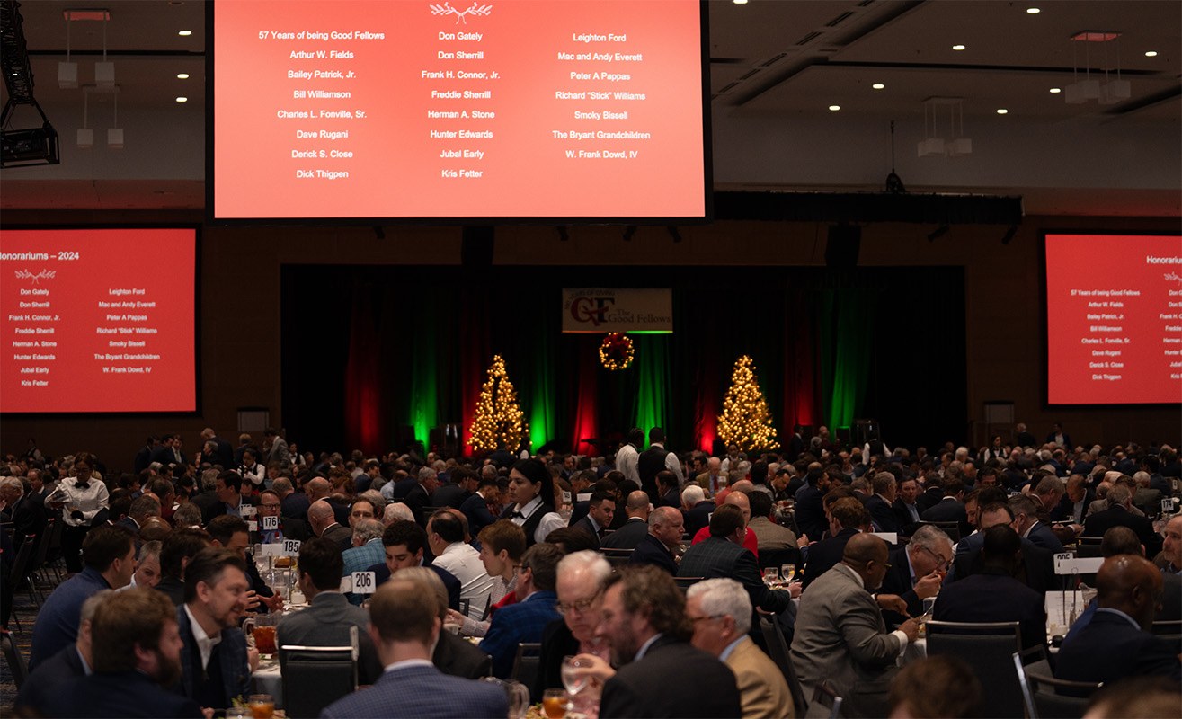 The Good Fellows Christmas Luncheon is a 108-year-old Charlotte tradition. In 2024, due to the generous support of our sponsors and members, we were able to raise $2.15M. This year, our sponsorship committee has set an ambitious goal of raising $2.5M. Dues and some sponsorship dollars cover the cost of the lunch and our minimal administrative expenses so that 100% of donated dollars at the luncheon go directly to Charlotte families in need.